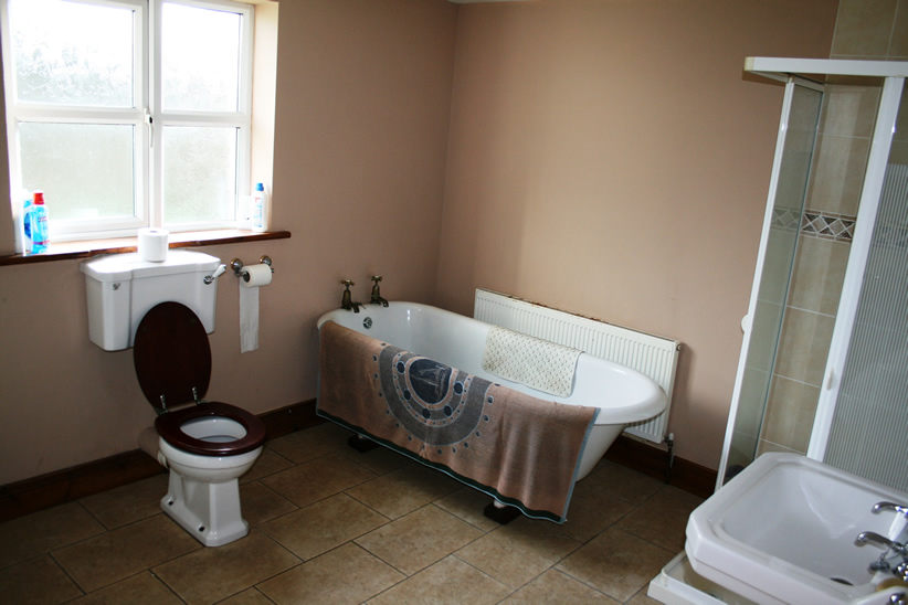 Doolough Lodge is accessed by a private 250 metre long road which leads into the property and outhouses in a secluded setting. The lodge which has an extensive floor area of 2,600 square feet enjoys attractive sea views from the front and is within walking distance to the famous Doolough Beach. Three of the bedrooms, the living area, the kitchen, a large storage area and the family bathroom are located to the rear of the property. The living room which features a large back boiler stove (heats the water and radiators) is placed near the entrance to the property. The newly refurbished fully fitted kitchen & dining area are located off the living room. The main family bathroom was also refurbished in recent years and contains a bathtub and electric shower.