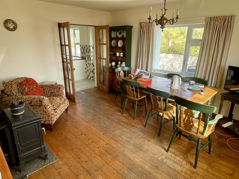 For sale, a three bed room property placed on approximately 0.25 of an acre at Stripe with uninterrupted scenic views over Broadhaven Bay. The town land of Stripe is 3km from Belmullet by car (and the property can also be accessed from Belmullet via the shoreline when the tide is out). Contained in Folio No. MY1317F the house is served by a septic tank system and the water is supplied from a well. The heating is provided by O.F.C.H. and there is an oil stove in the dining area and an open fireplace in the sitting room. Some internal improvements have been carried out recently including the installation of a new kitchen and a fully tiled bathroom, there is also double glazing throughout.