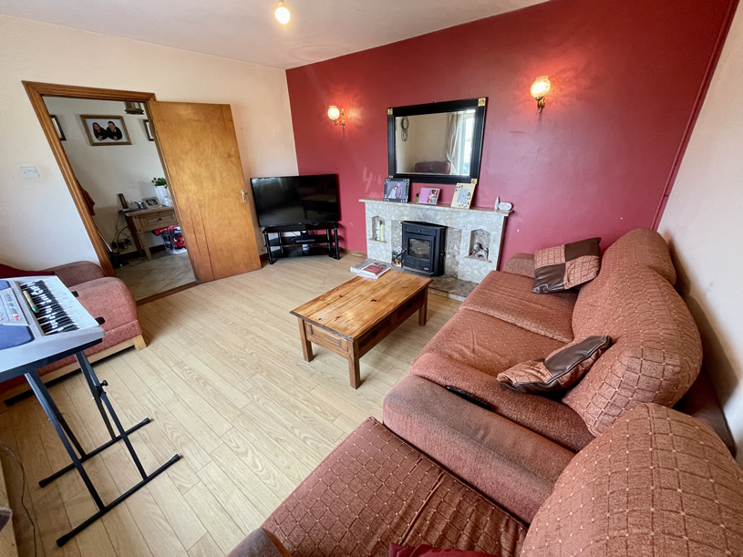 A three bedroom property situated in the village of Corclough West which is 5km from Belmullet town. The house was constructed in 1986 and the total internal floor area is 1,170 square feet. Most of the furniture is included in the sale and the property is contained in Folio No. MY7772F. The total site area amounts to approximately 0.37 of an acre with gardens and shed to the rear. The property is served by a septic tank system and the heating is provided by O.F.C.H. and an insert stove (back boiler) in the sitting room with double glazing throughout.