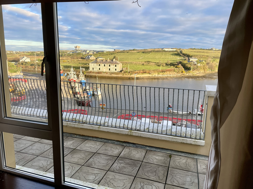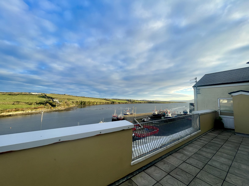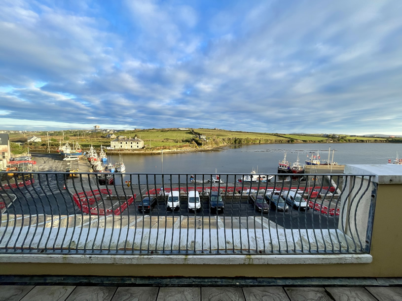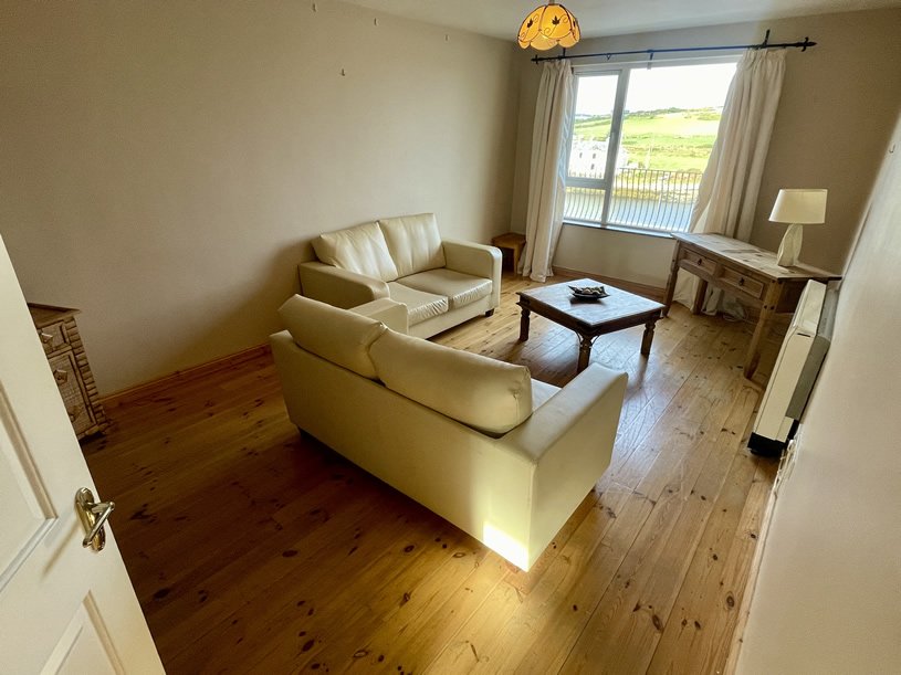 For sale, a first floor two bed room apartment located in the Harbour View complex on Barrack Street in Belmullet town. The apartment is accessed by a stairwell off Barrack Street and is contained on one level. Constructed in 2004, No. 4 Harbour View is being offered for sale fully furnished and fitted with all electrical appliances included and is in excellent condition throughout. The living area and public balcony overlook Belmullet docks with scenic views over Broadhaven Bay.
