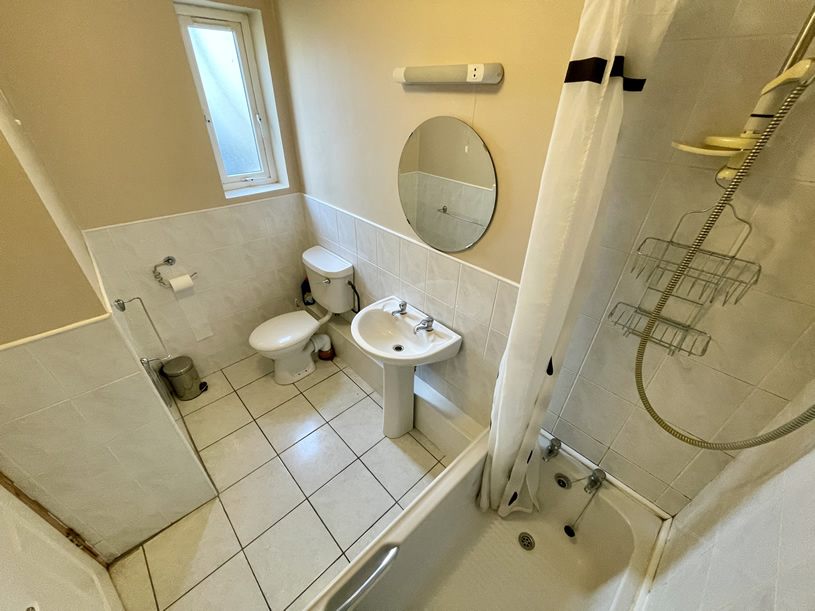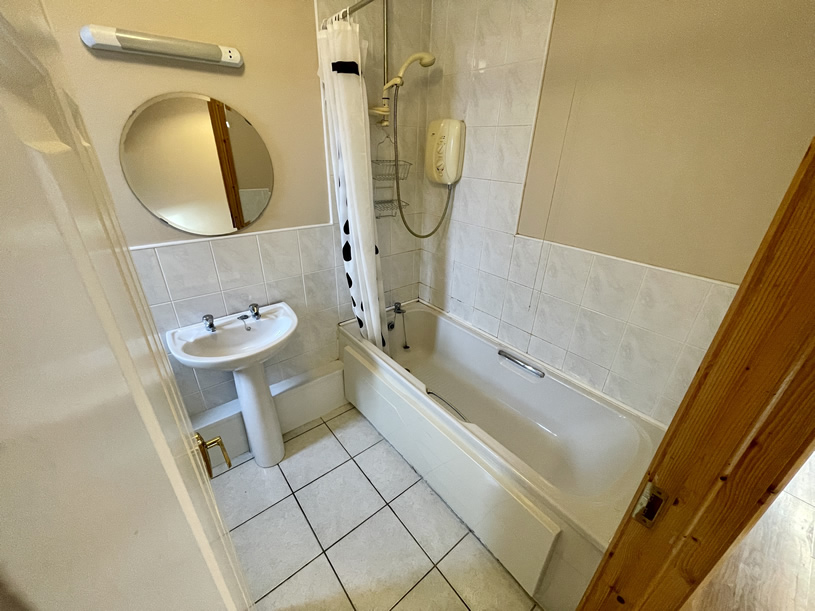 -Bathroom with electric shower and bathtub